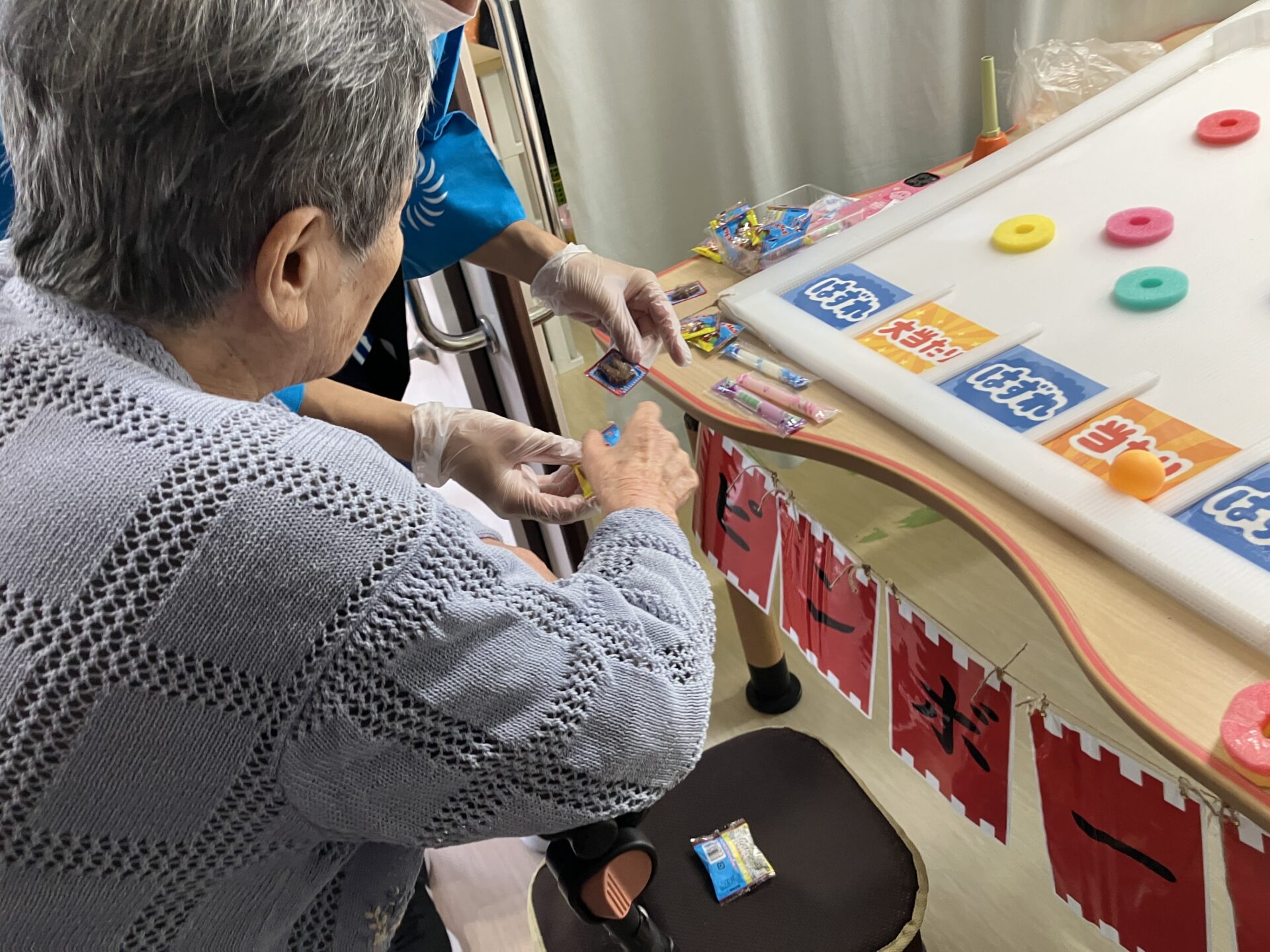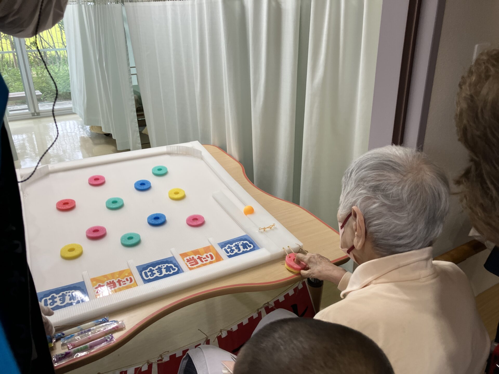 今回は、ゲーム屋台もあり、ご利用者様もお子様も景品のお菓子をゲットして
