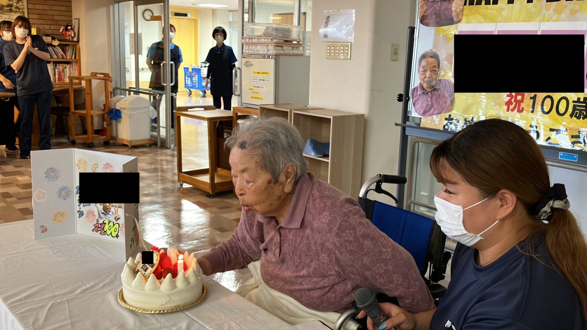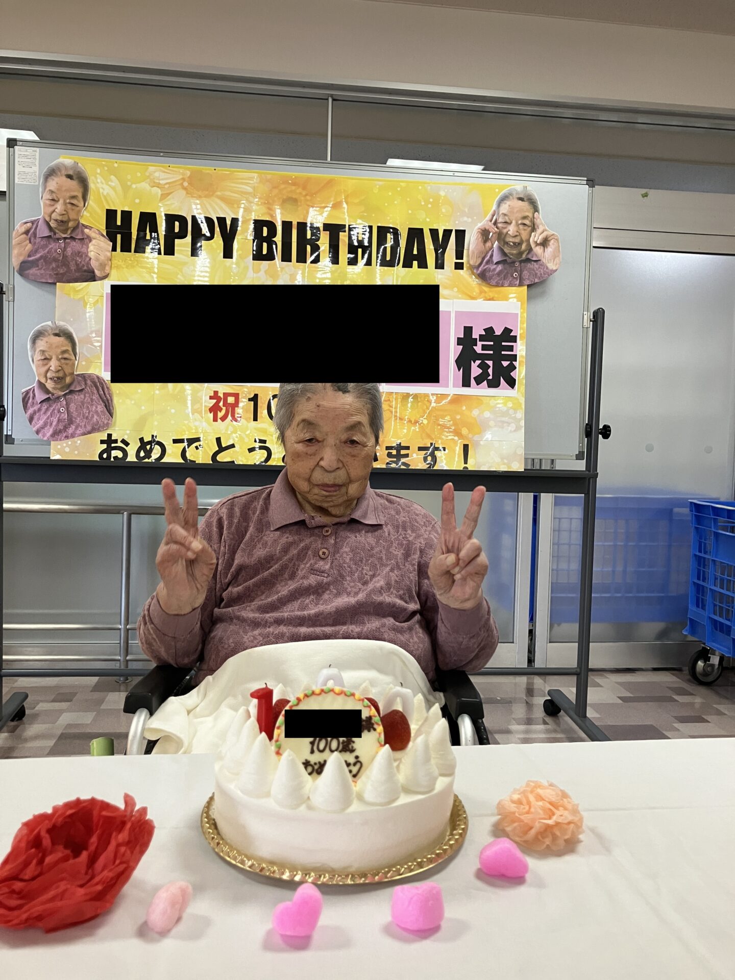 2025.10.28 特別養護老人ホームショートステイ 100歳のお祝い こんにちは特別養護老人ホームやすらぎの里です! 先日ご利用者様が100歳の誕生日をお迎えになられました! そこでささやかではありますが、 施設でお祝い会を開催させていただきました✨ 他のご利用者様もお祝いにご参加いただき お誕生日の歌を歌い、皆さんでおいしいケーキを食べました🍰 皆様お祝いの言葉をかけていらっしゃり、笑顔のあふれる会になりました✨ PREV. 秋祭り カテゴリー お知らせ法人からの連絡特別養護老人ホームショートステイディサービス居宅介護支援グループホーム